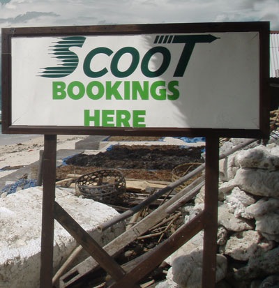 Four hours later I tossed that advice around from one side of my mind to the other as I stood sheltering in the Scoot office on the Sanur beachfront…sheltering from the squalls of rain that were whipping across the grey expanse of the beginnings of the Lombok Straits...one of the world’s deepest sea channels, and the divide between Bali’s mainland and the usually tranquil Nusa Lembongan. Do we go or do we stay and wait….ahhh, fuck it all, let's go. How bad can it be? After all, Indonesia hasn’t a history of marine disasters, and the weather can’t get that bad, surely. Brigid asks the smiling girl in the green uniform with the clipboard who says, reassuringly, that it might just be “a little bit bumpy”.